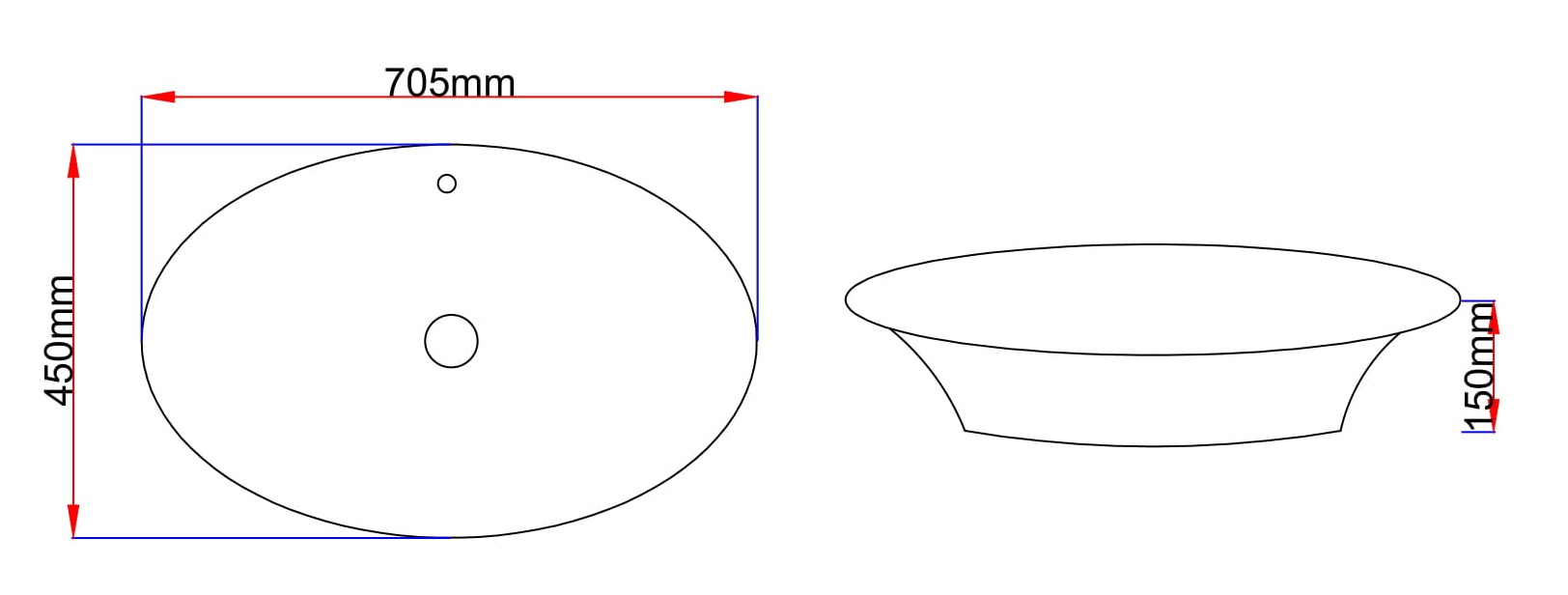 Keramikinis uždedamas praustuvas be skylės maišytuvui.