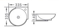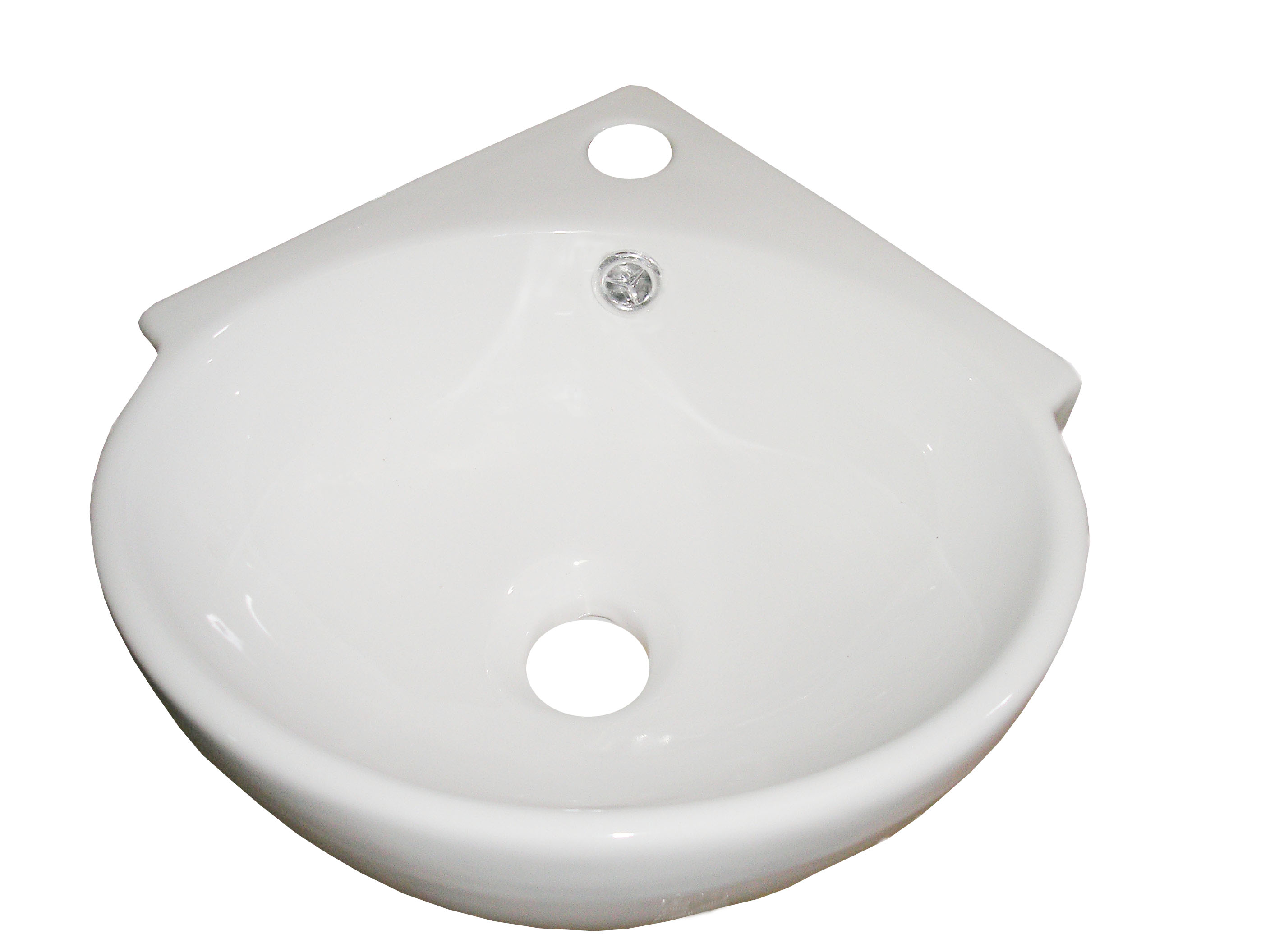Kampinis pakabinamas praustuvas su skyle maišytuvui.