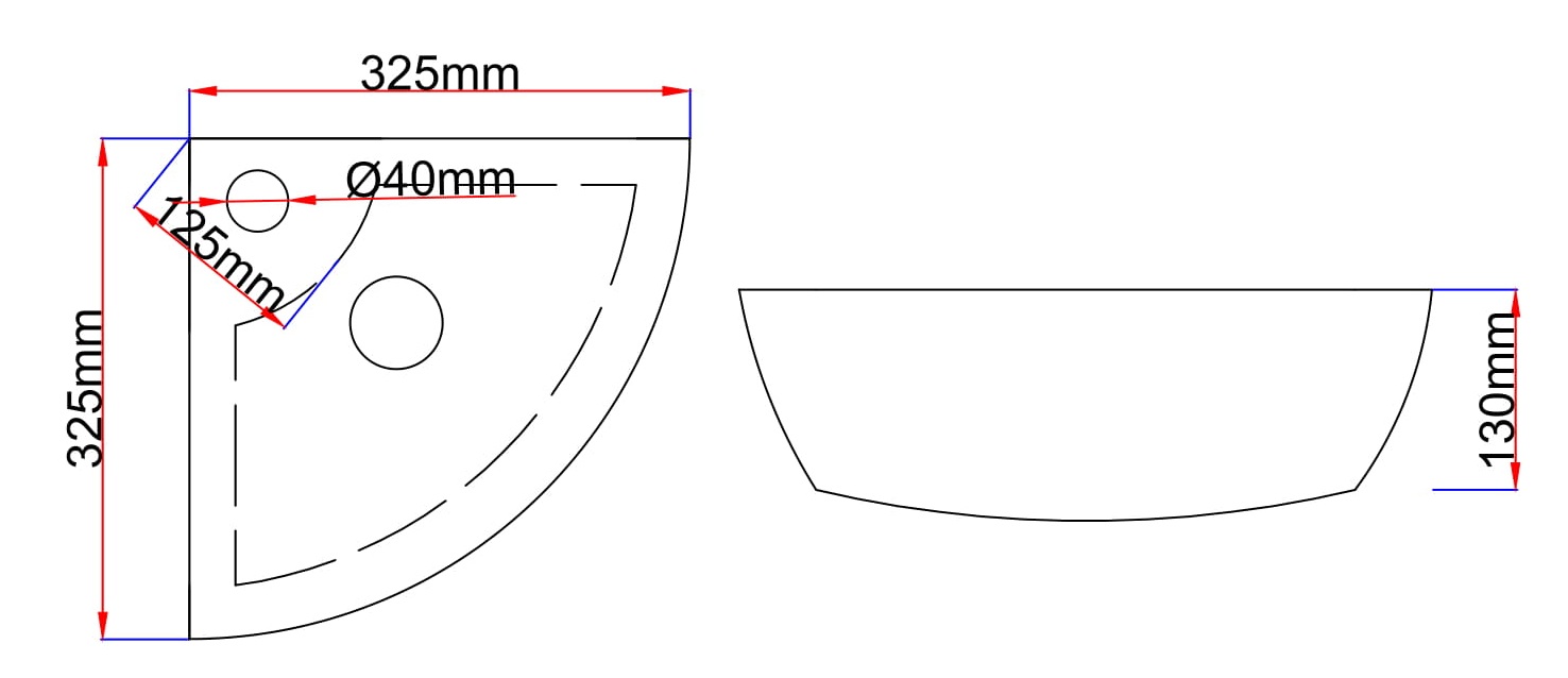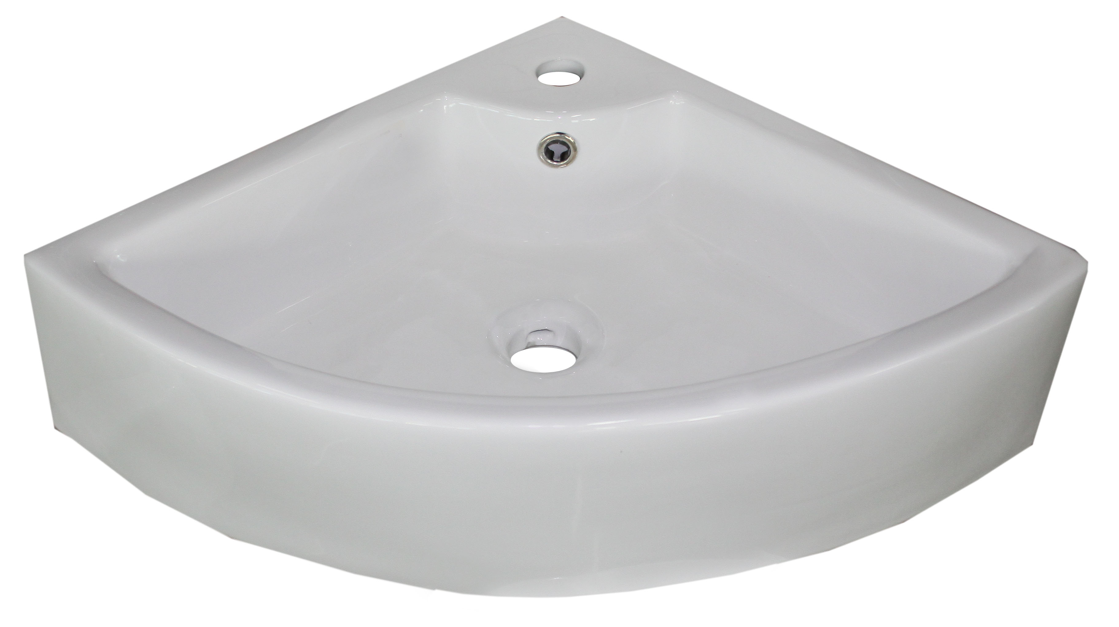 Keramikinis kampinis praustuvas su 40 mm skyle maišytuvui.
