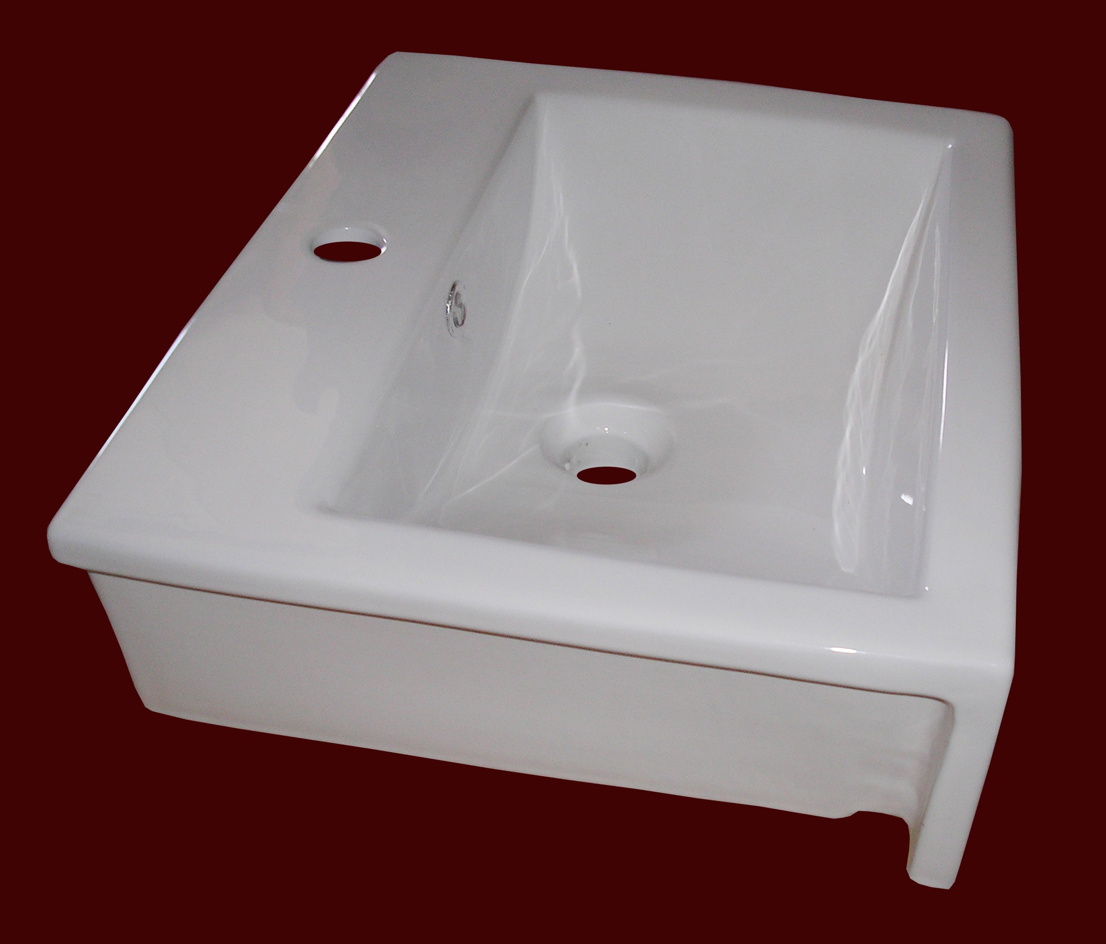 Keramikinis praustuvas su skyle maišytuvui.