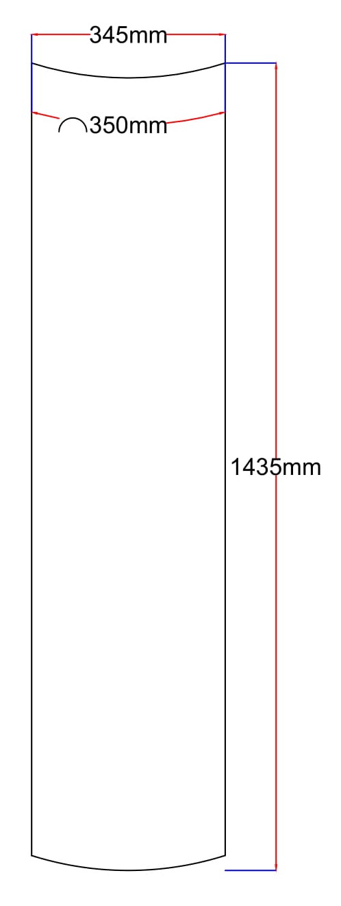 Dušo kabinos šoninis stiklas lenktas 345x1435 (lenkta dalis 350