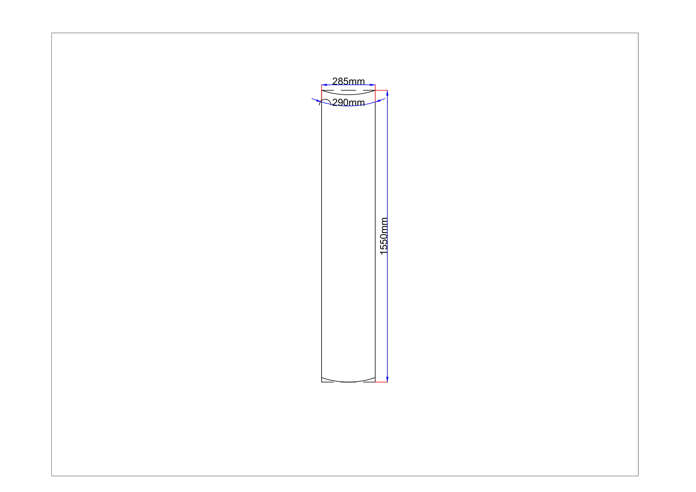 Dušo kabinos šoninis stiklas lenktas 285x1550 mm