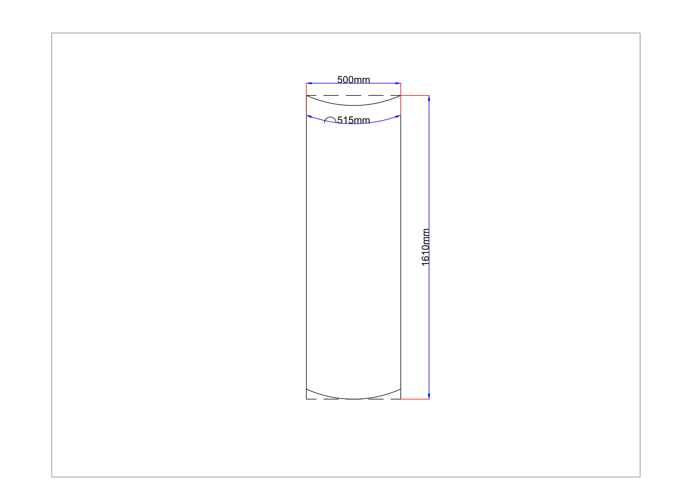 Dušo kabinos šoninis stiklas lenktas 500x1610 mm