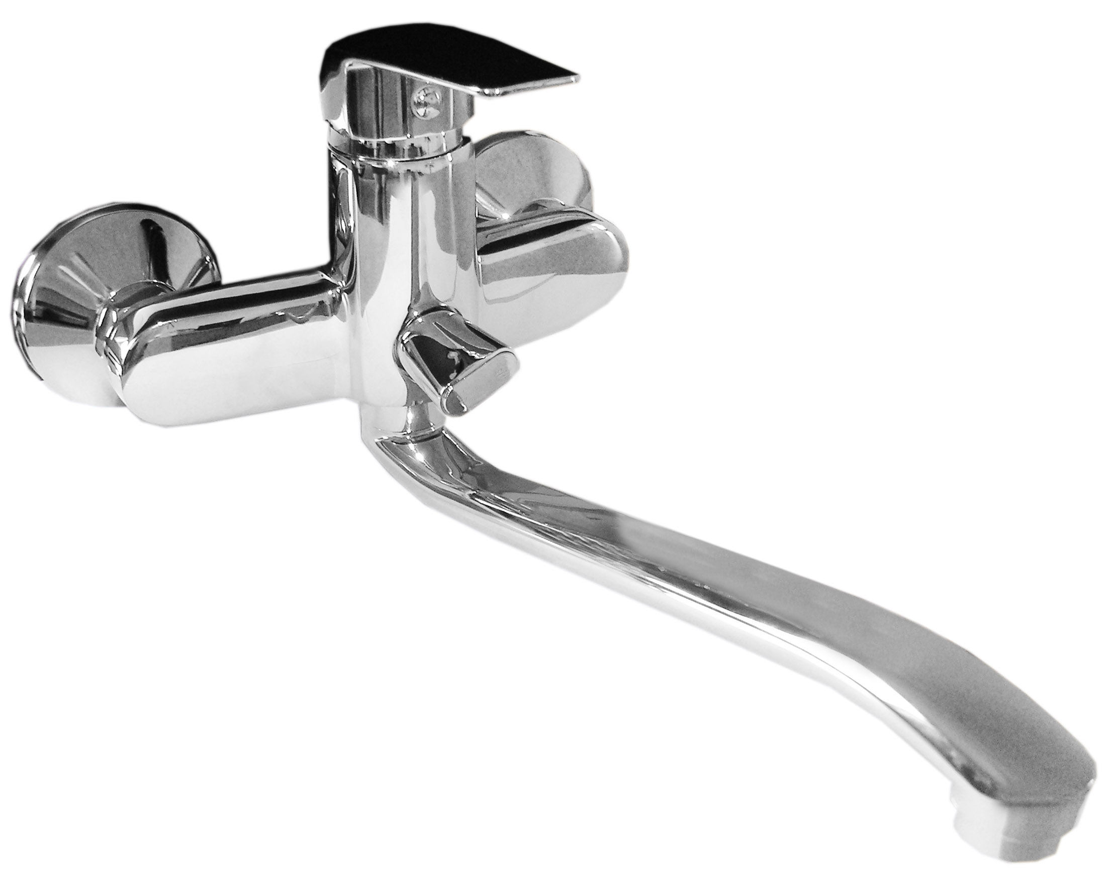 Vienos svirties vonios maišytuvas ilgu lenktu (S formos snapu).