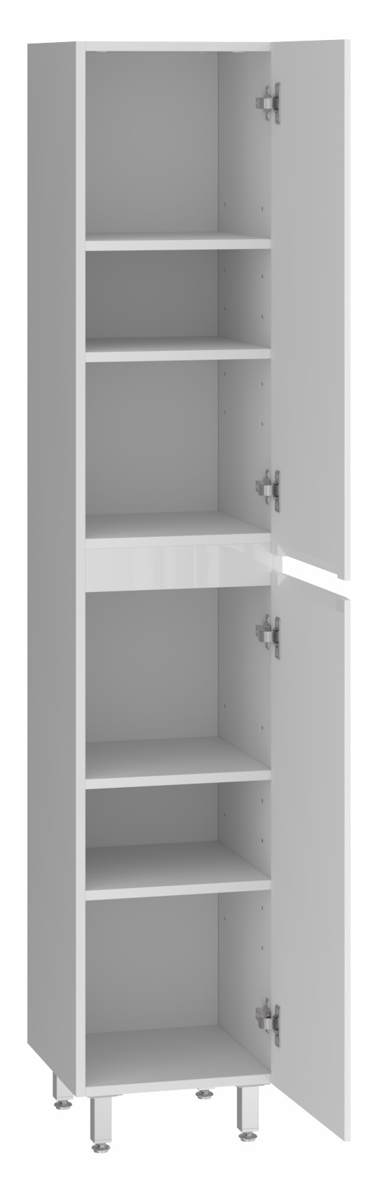 Dizainas turi du skyrius; tiek viršutinio, tiek apatinio skyriaus vidinę erdvę skaido dvi reguliuojamos lentynos iš baltos medžio drožlių plokštės. Durys šarnyruojamos ant savaime besikreipiančių vyrių, kurie užtikrina sklandų ir minkštą uždarymą.