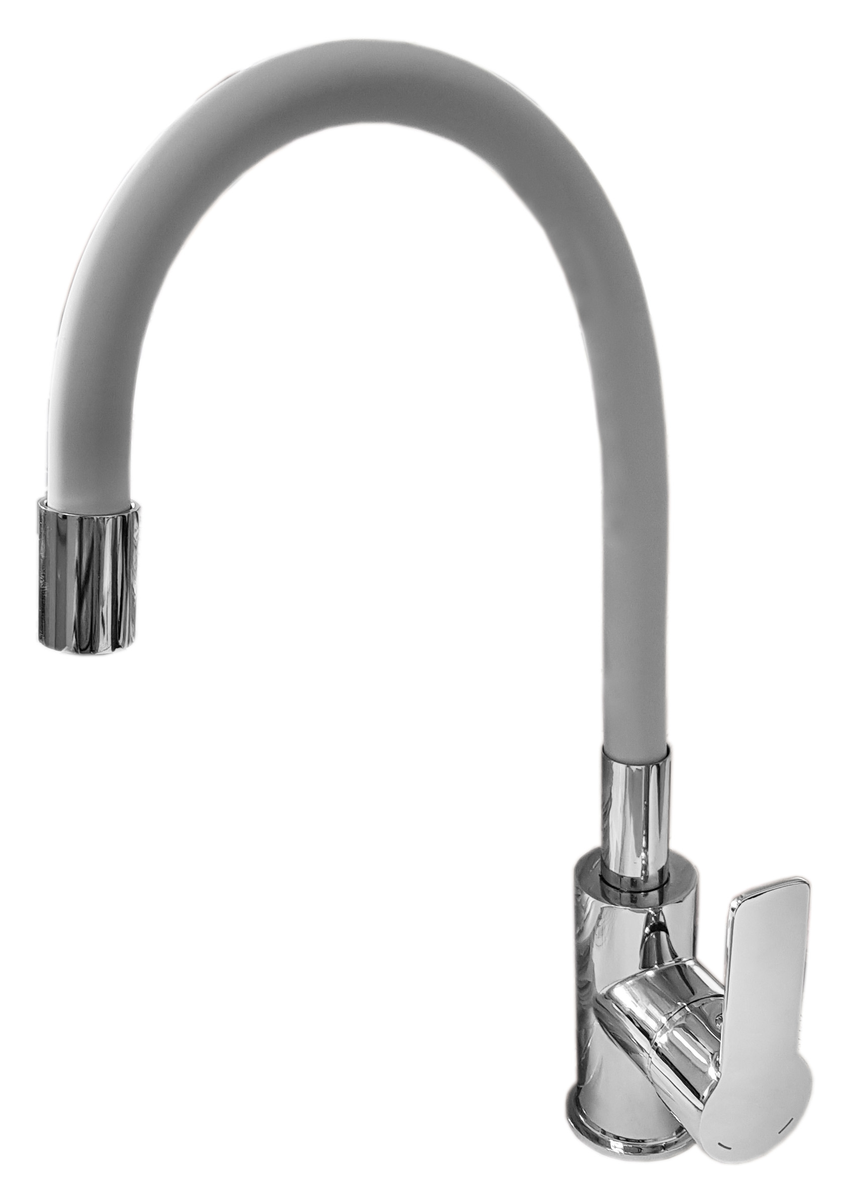 Maišytuvas su lanksčiu silikoniniu pilkos spalvos snapu.