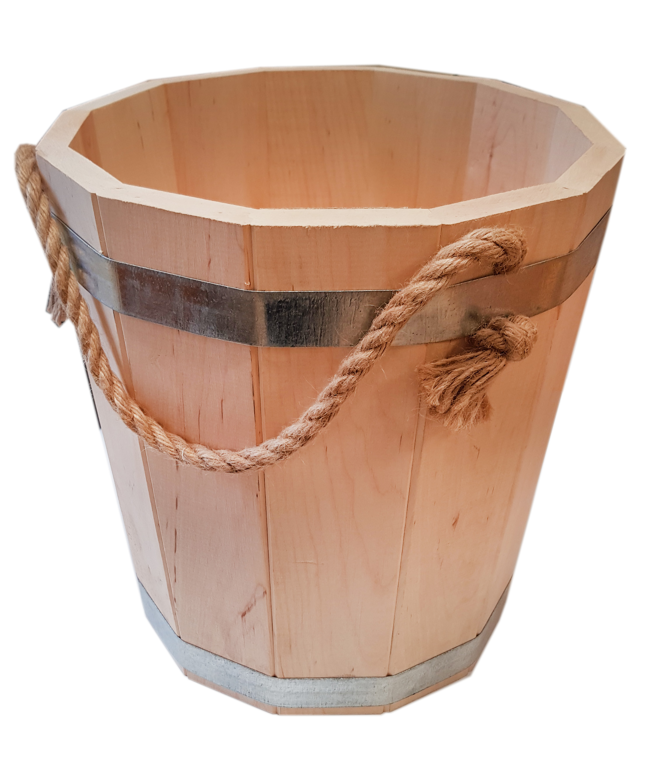 Medinis kibiras su virve tiks ir vantai mirkyti ir vandeniui su kvapais maišyti.