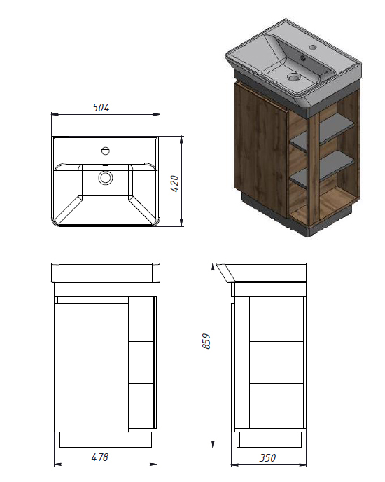Spintelės matmenys 504x420x859