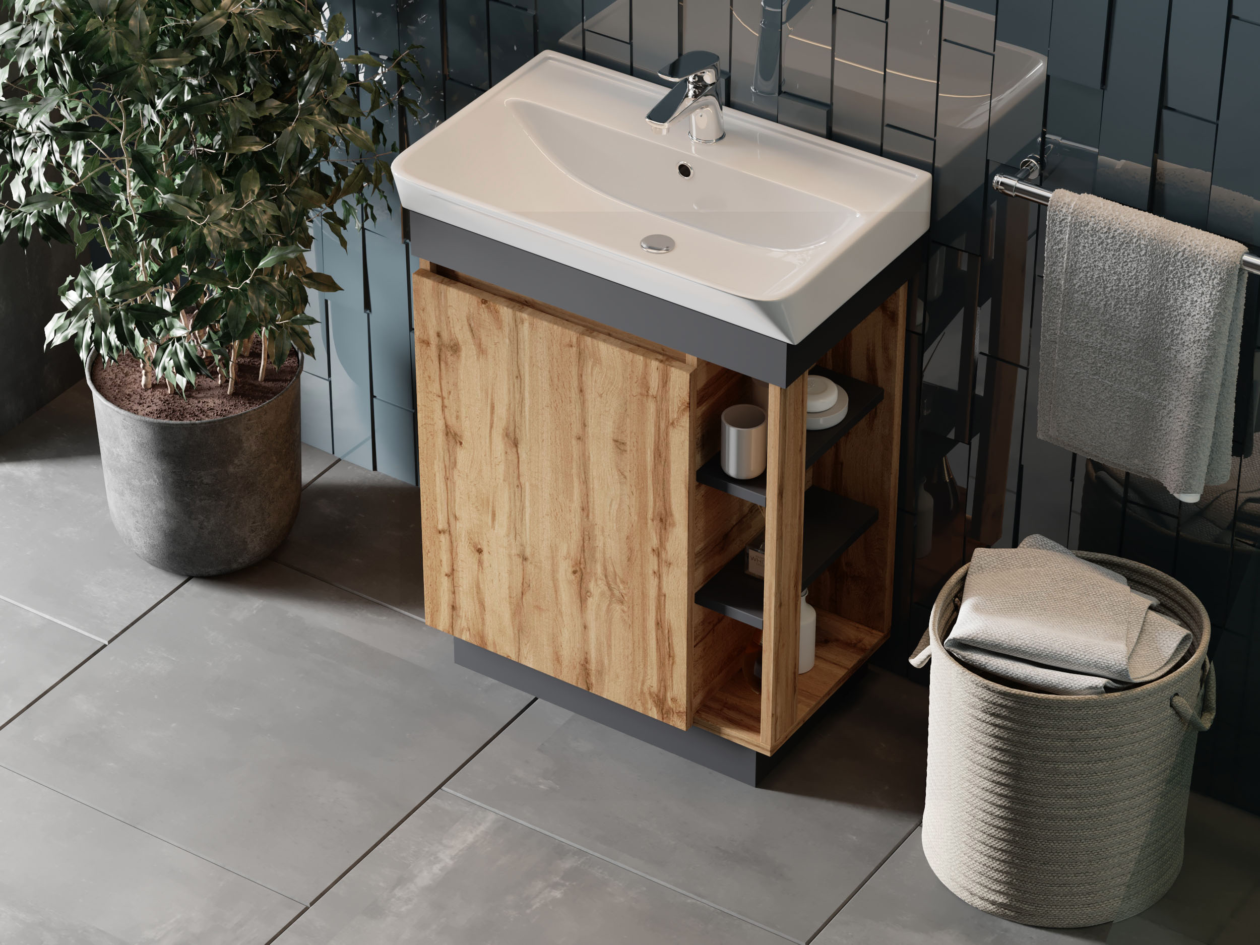 Vonios kambario spintelė su praustuvu UTAH UT-50 mat. ruda