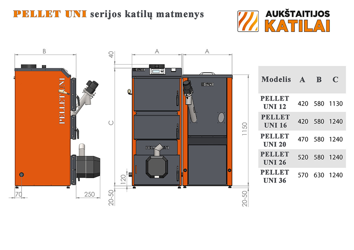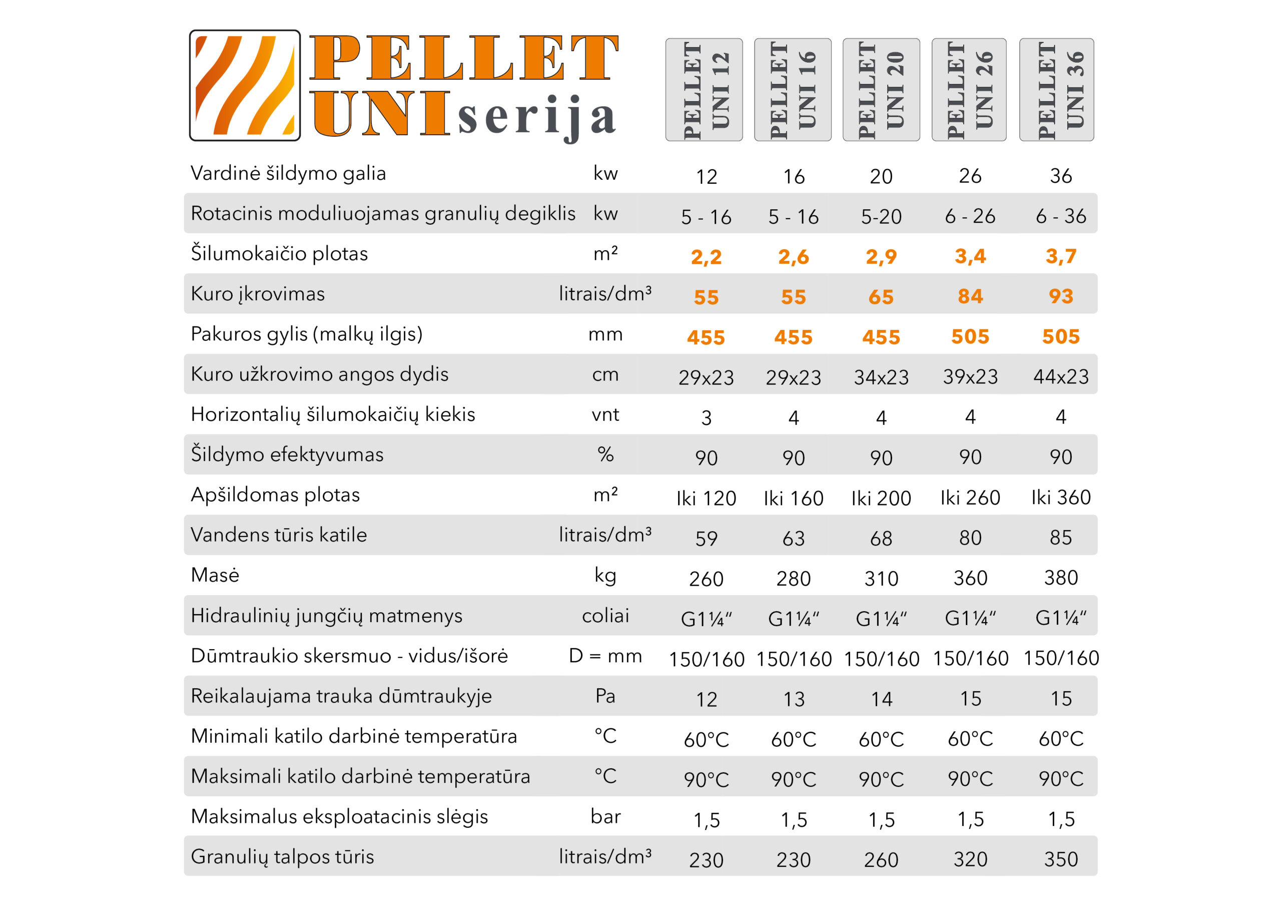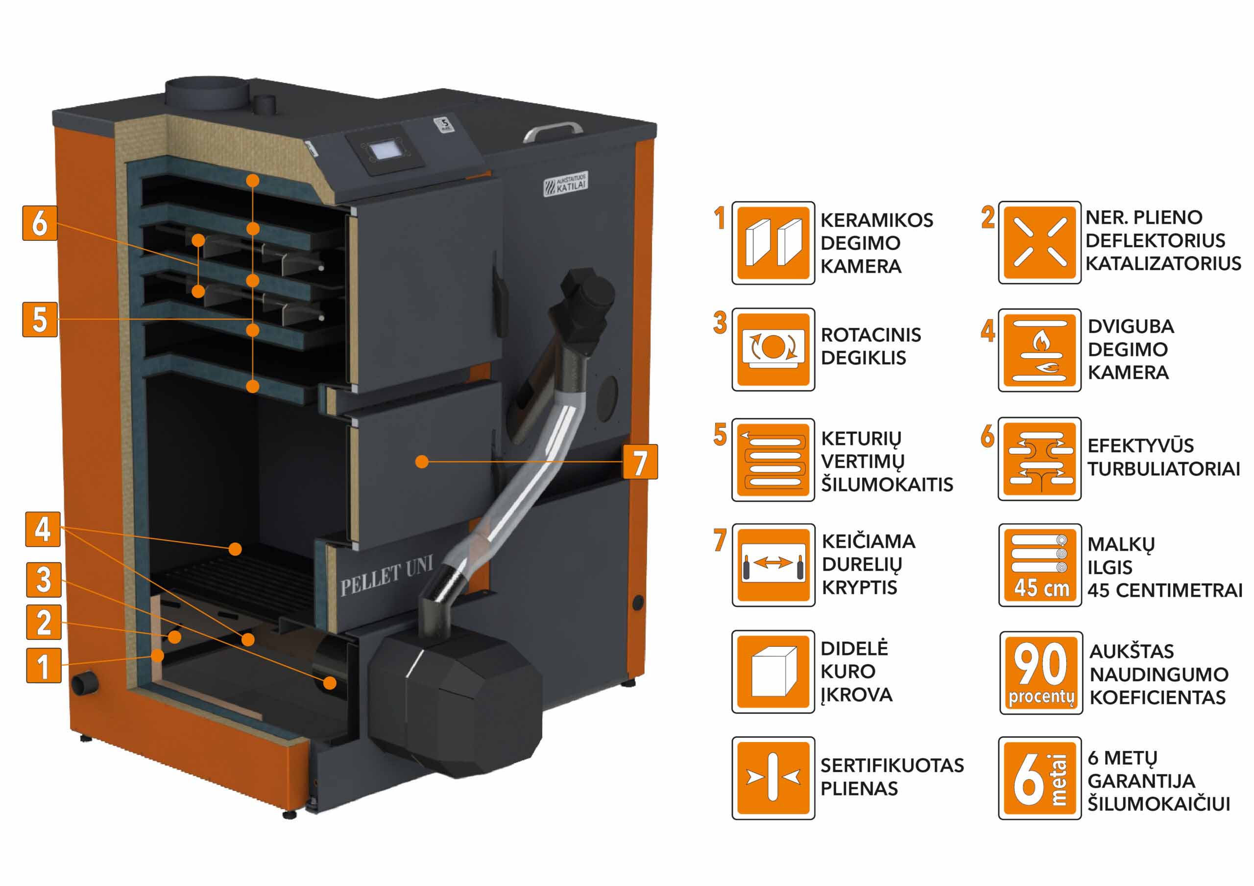 Katilas PELLET UNI 12 su KIPI ROT POWER 12 kW degikliu ir 260 l