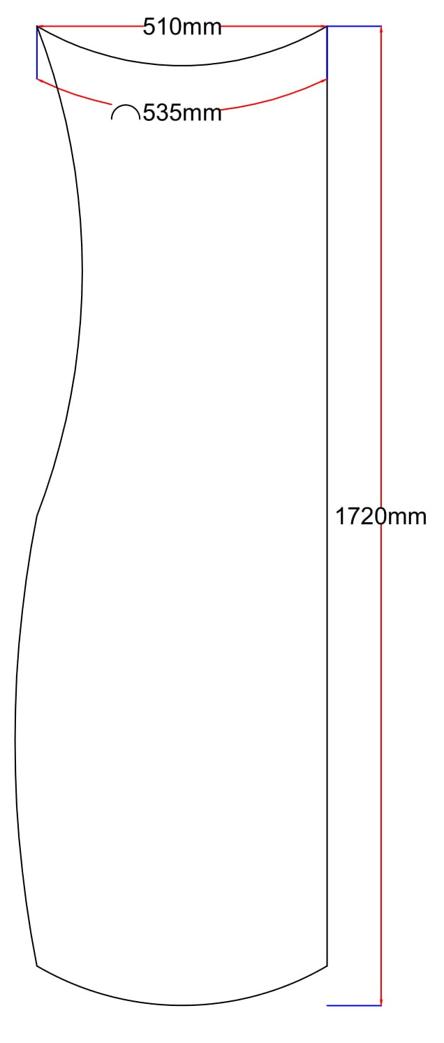 Matmenys: 510x1720 mm (lenkta dalis 535 mm)