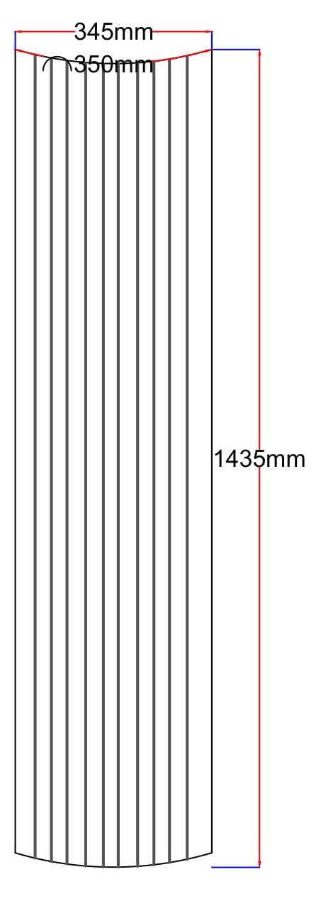 Matmenys: 345x1435 mm (lenkta dalis 350 mm)