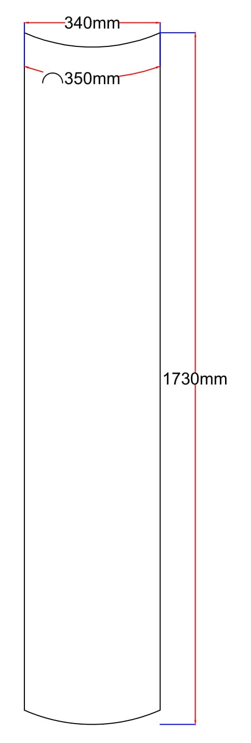 Matmenys:340x1730 mm (lenkta dalis 350 mm)
