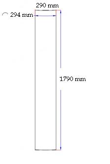 Matmenys: plotis 290 mm (išlenkimas 294 mm) x aukštis 1790 mm