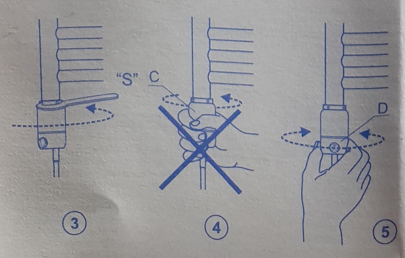 • Nemėginkite priveržti prietaiso ranka sukdami plastikinį gaubtą (C) (Pav. 4). Pritvirtinę prietaisą prie radiatoriaus atsargiai ranka pasukite  potenciometro korpusą (D) ir nustatykite jį į norimą padėtį.