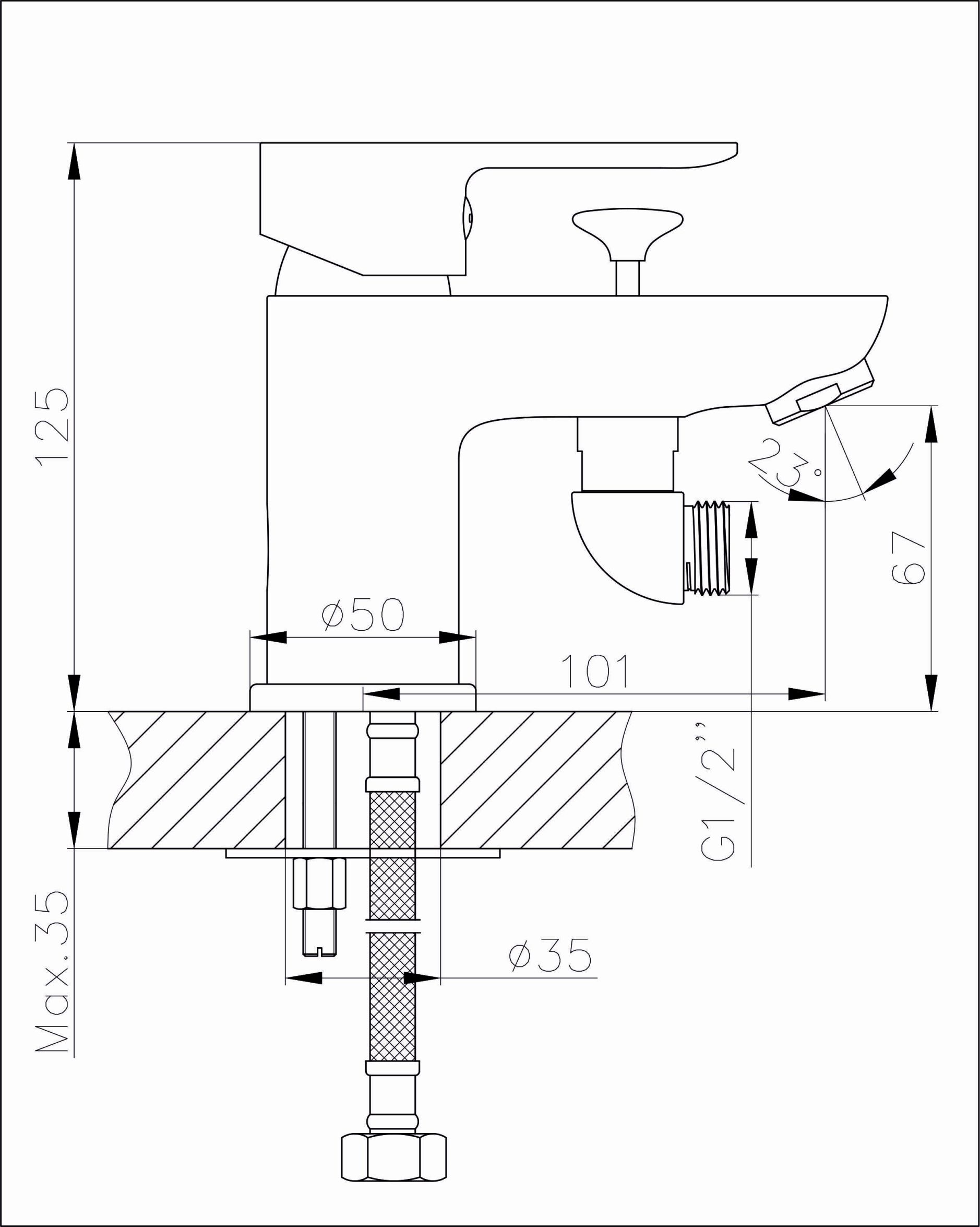 Vienos svirties maišytuvas praustuvui su galimybe prijungti dušo žarną (bidė pajungimo galimybė).