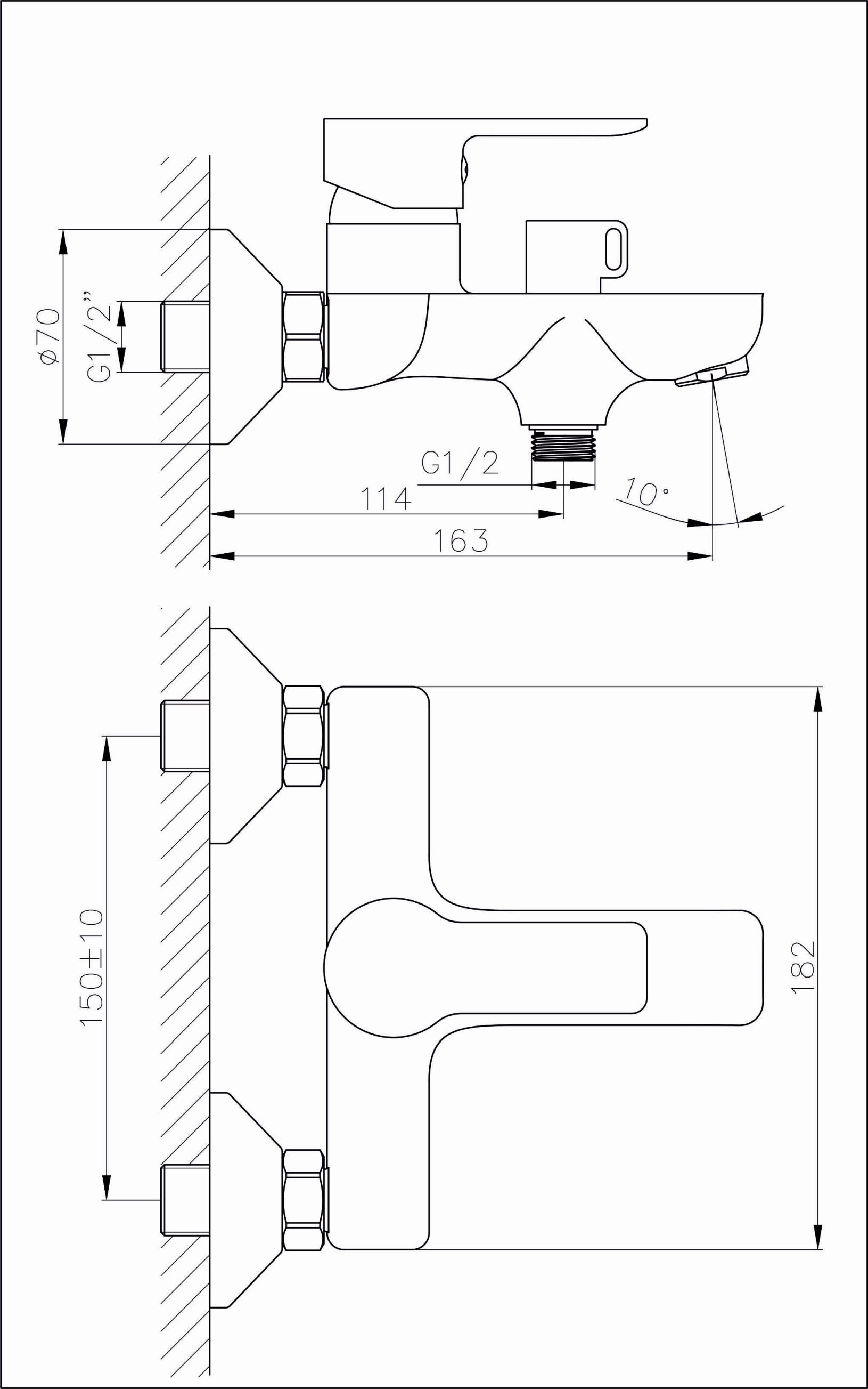 Vienos svirties dušo maišytuvas trumpu snapeliu.