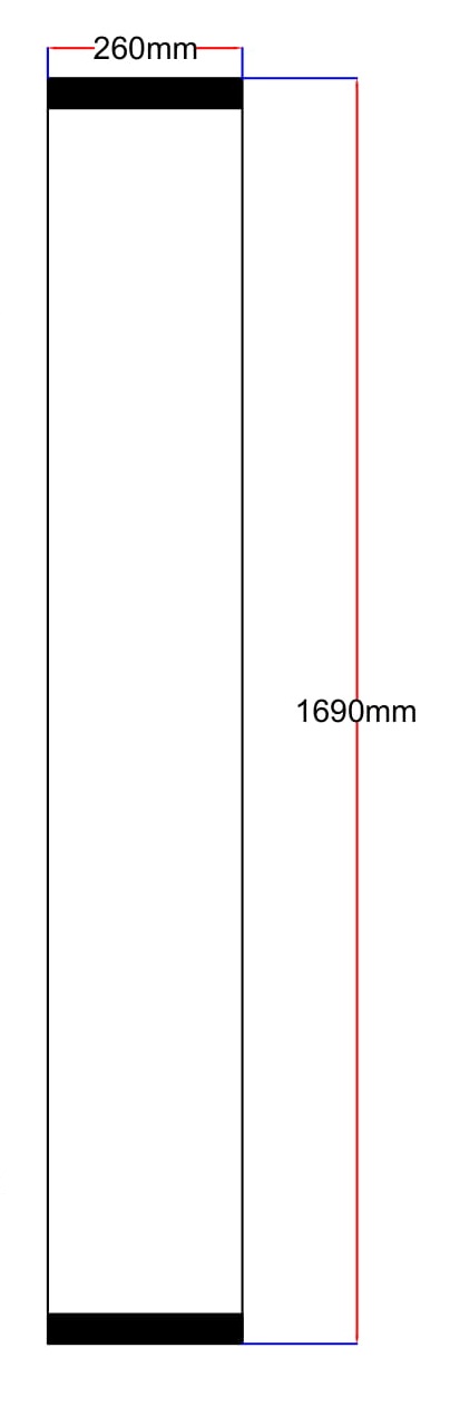 Stiklo matmenys: 260x1690 mm
