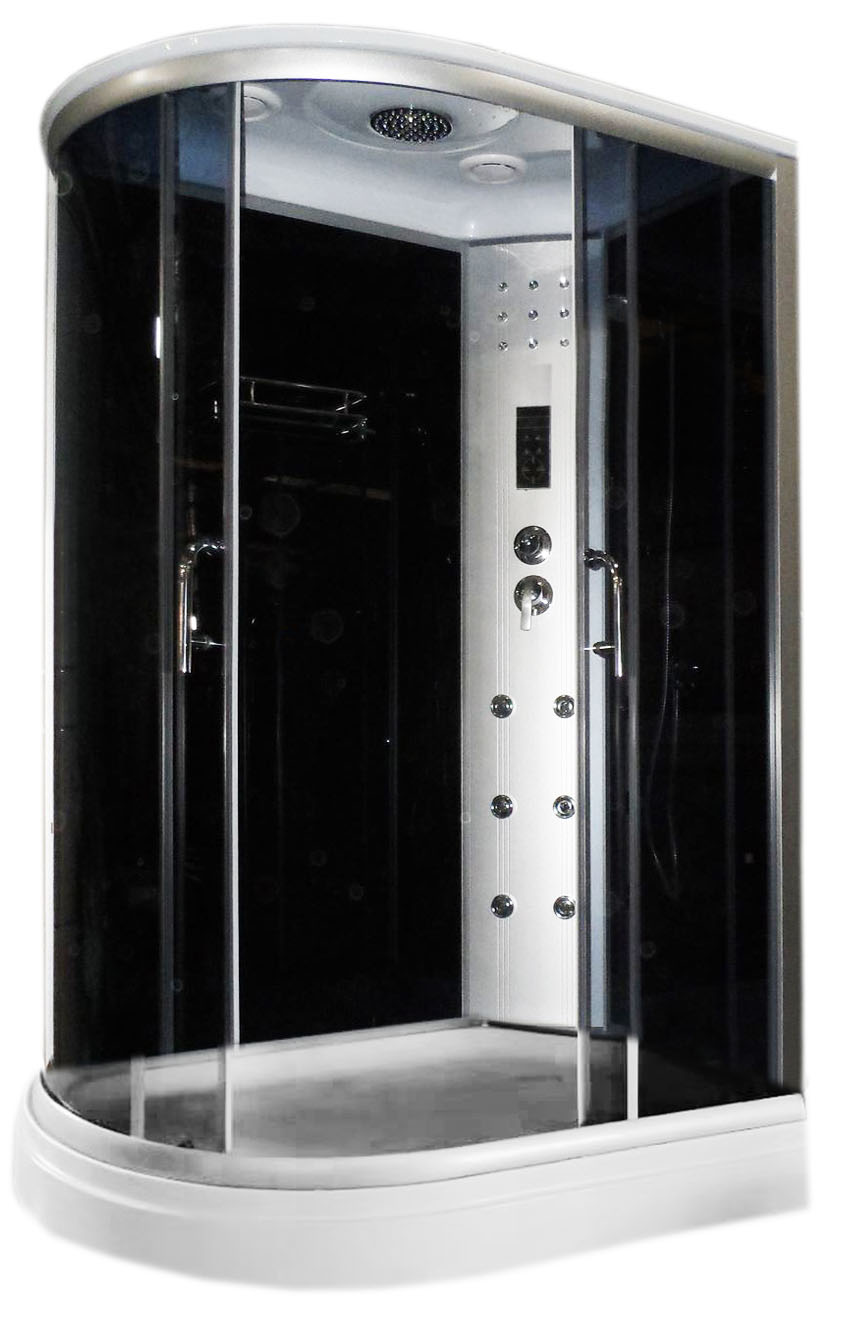 Dušo kabina statoma į dešinįjį patalpos kampą.