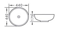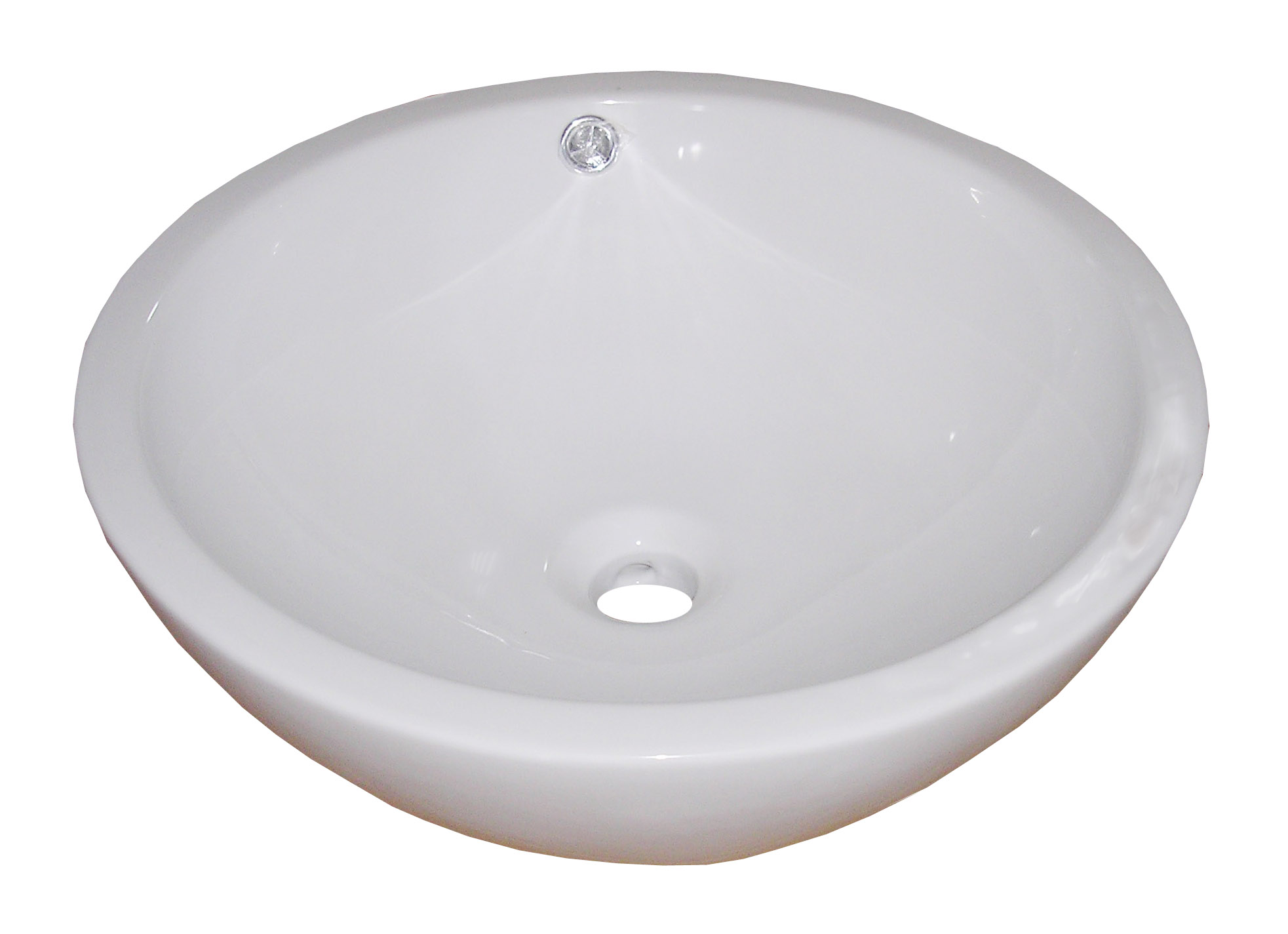Keramikinis apvalus praustuvas be skylės maišytuvui.
