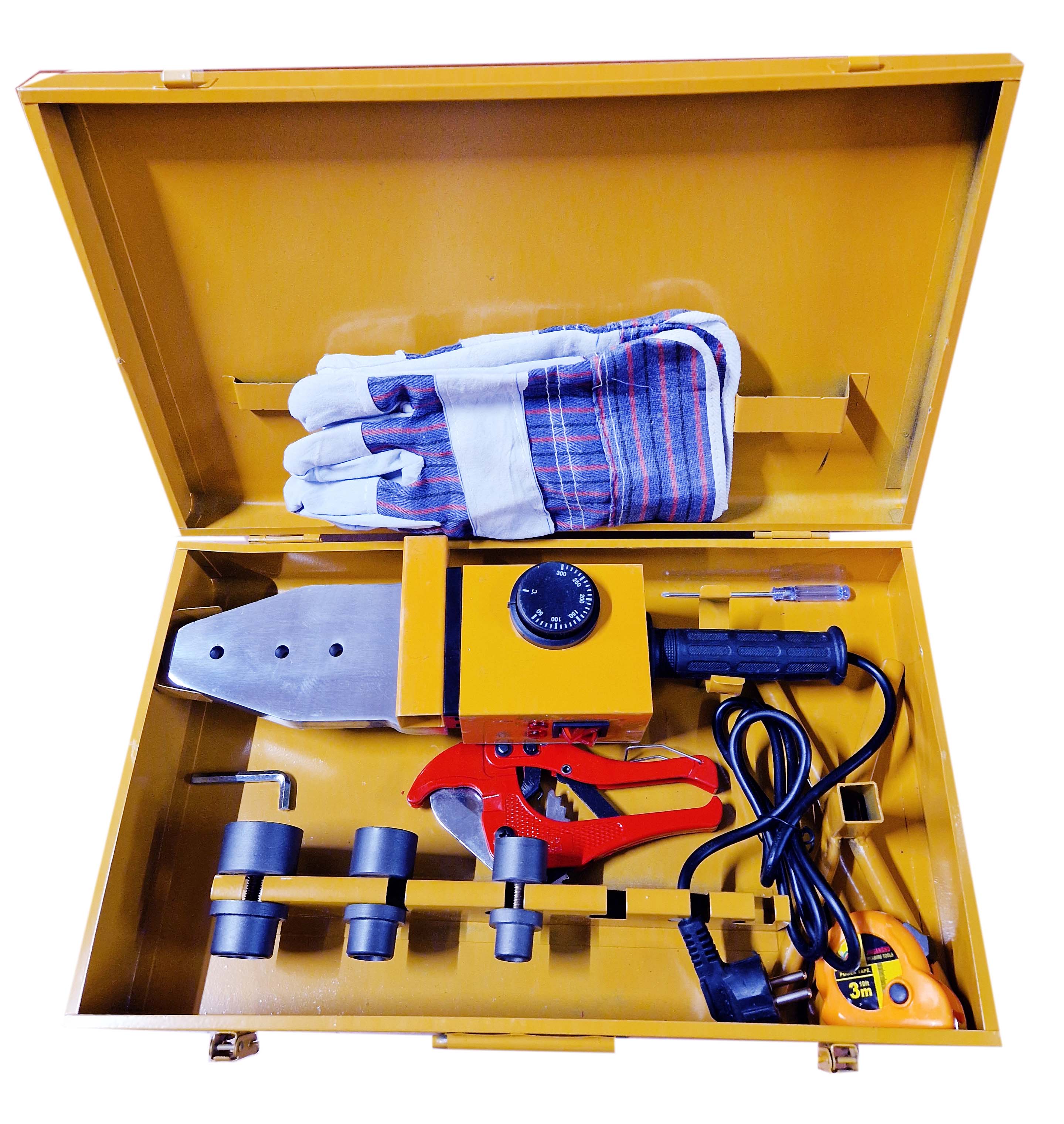 Komplektacija: litavimo aparatas, aparato laikiklis - priveržėjas, litavimo antgaliai 20-32mm, PPR žirklės, matavimo ruletė 3m, šešiakampis raktelis, figūrinis atsuktuvas.