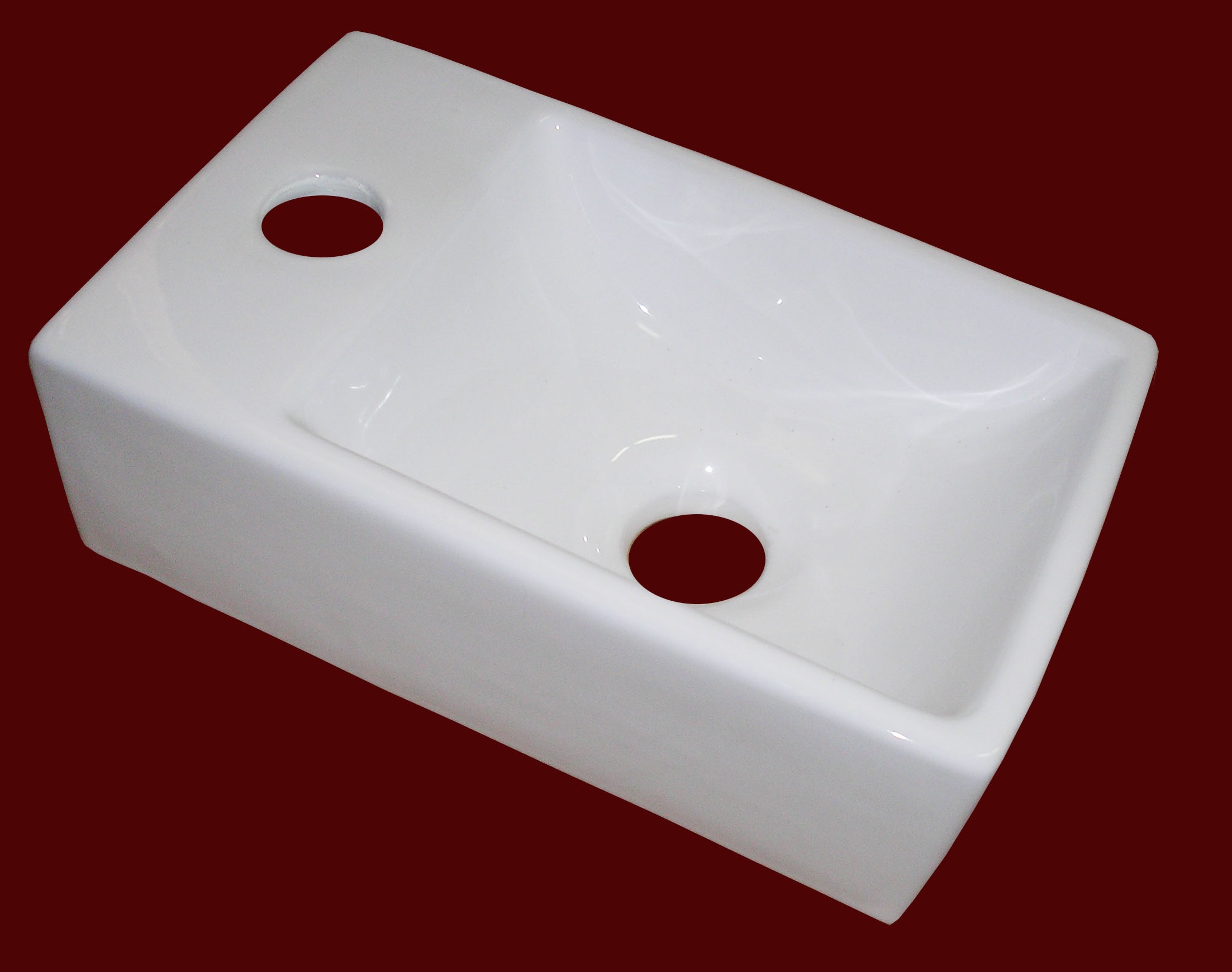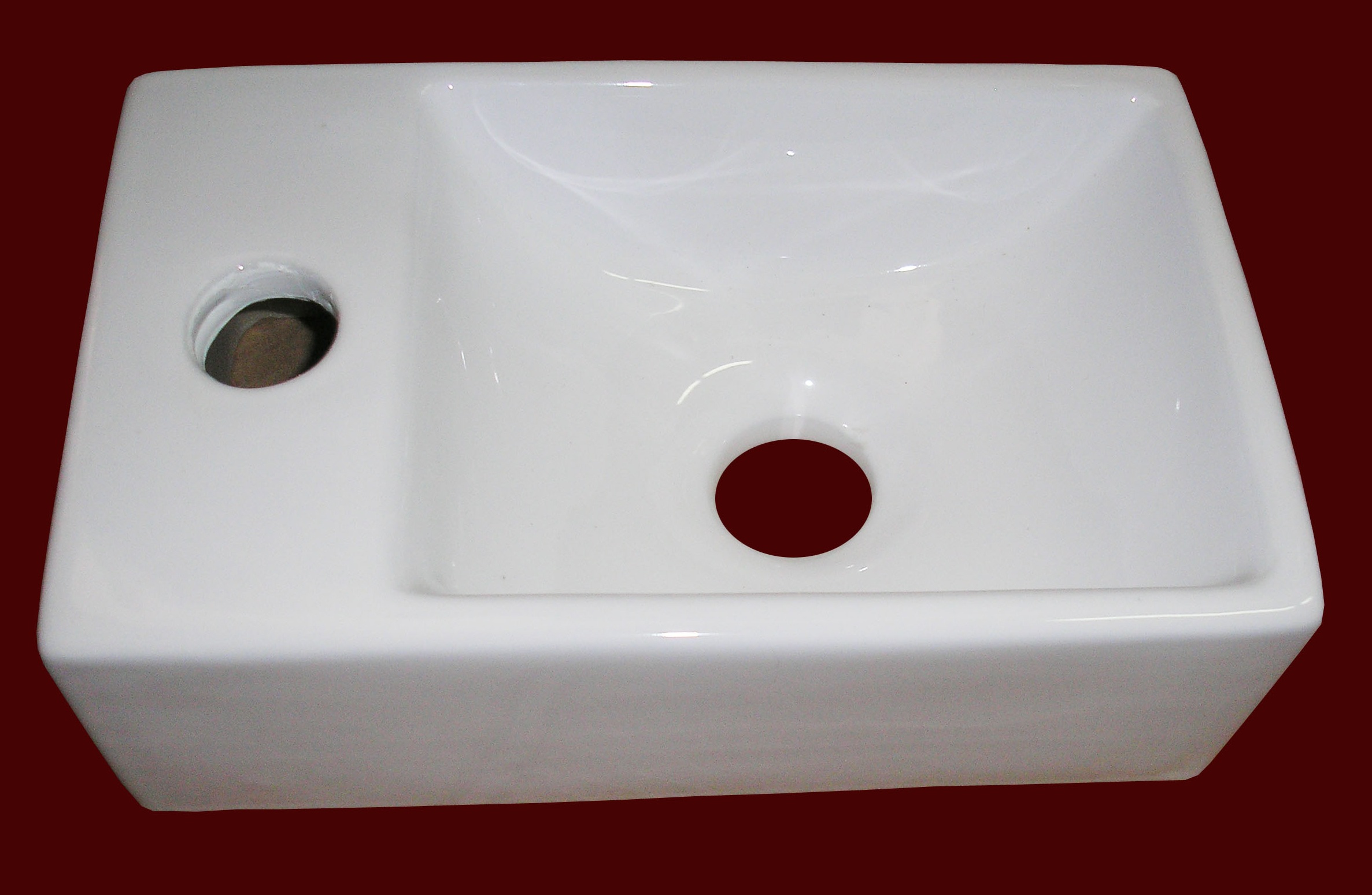 Pakabinamas keramikinis praustuvas su skyle maišytuvui.