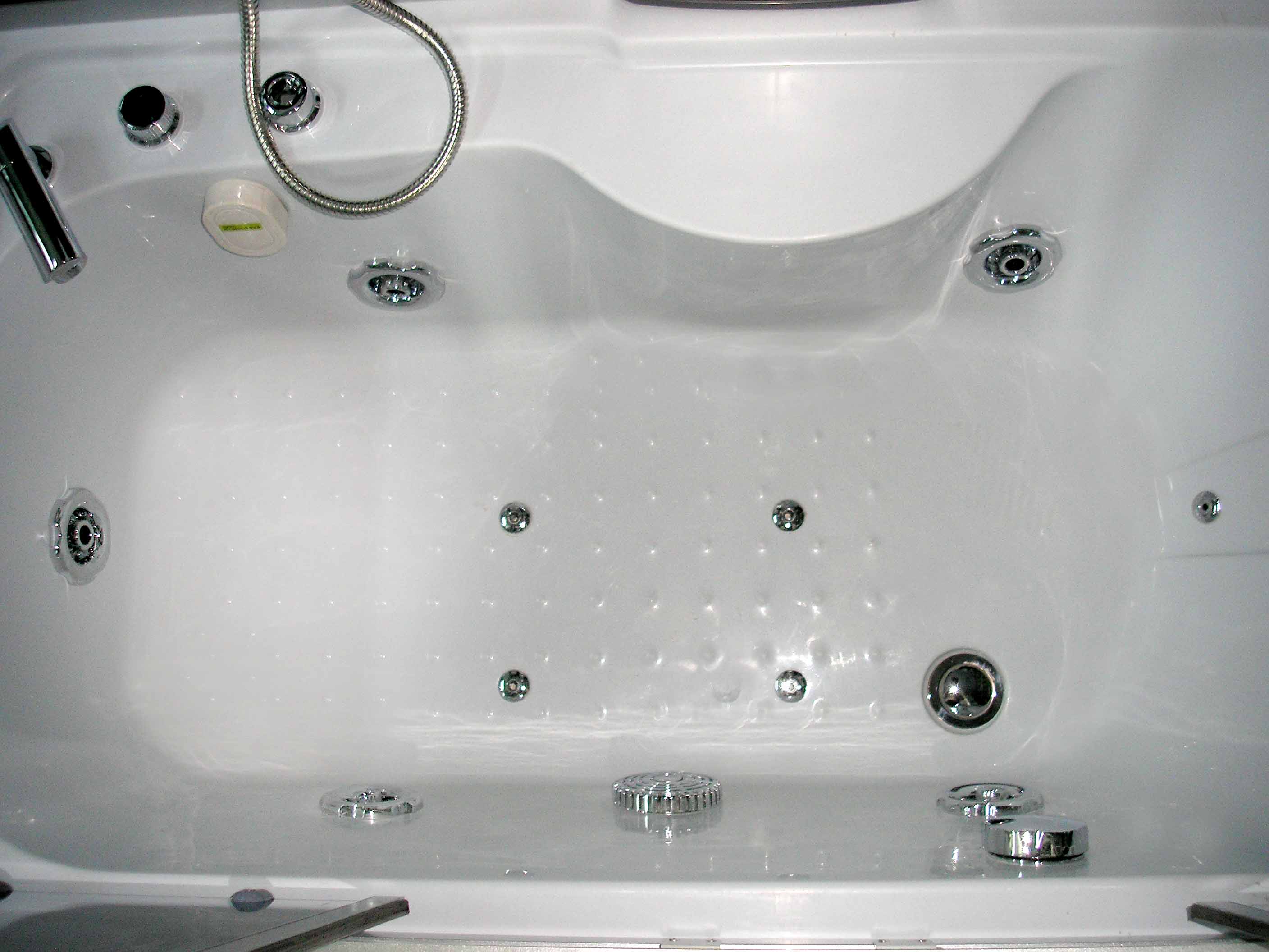 Vandens masažas veikia per masažinius vandens purkštukus, esančius vonios šonuose ir galuose.