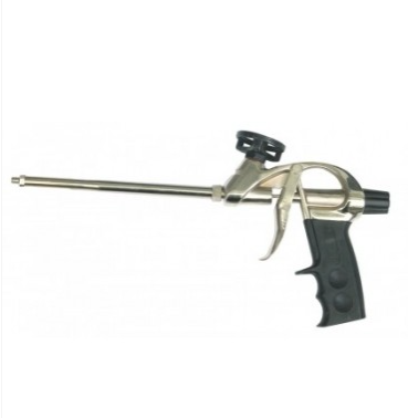Pistoletas turi metalinę rankenėlę, leidžiančią reguliuoti putų srautą.