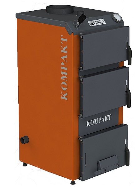 „KOMPAKT" katilas - aukščiausios kategorijos gaminys su dideliu šilumokaičiu ir didelė kuro įkrova užtikrina ilgą degimo laiką. Tai labai nebrangi bei paprasta naudoti konstrukcija.