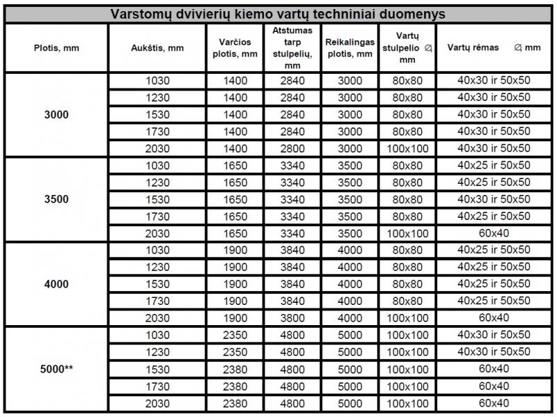 Dvigubi atveriami vartai su segmento VEGA užpildu, pritaikytais stulpeliais, vyriais ir užraktu.